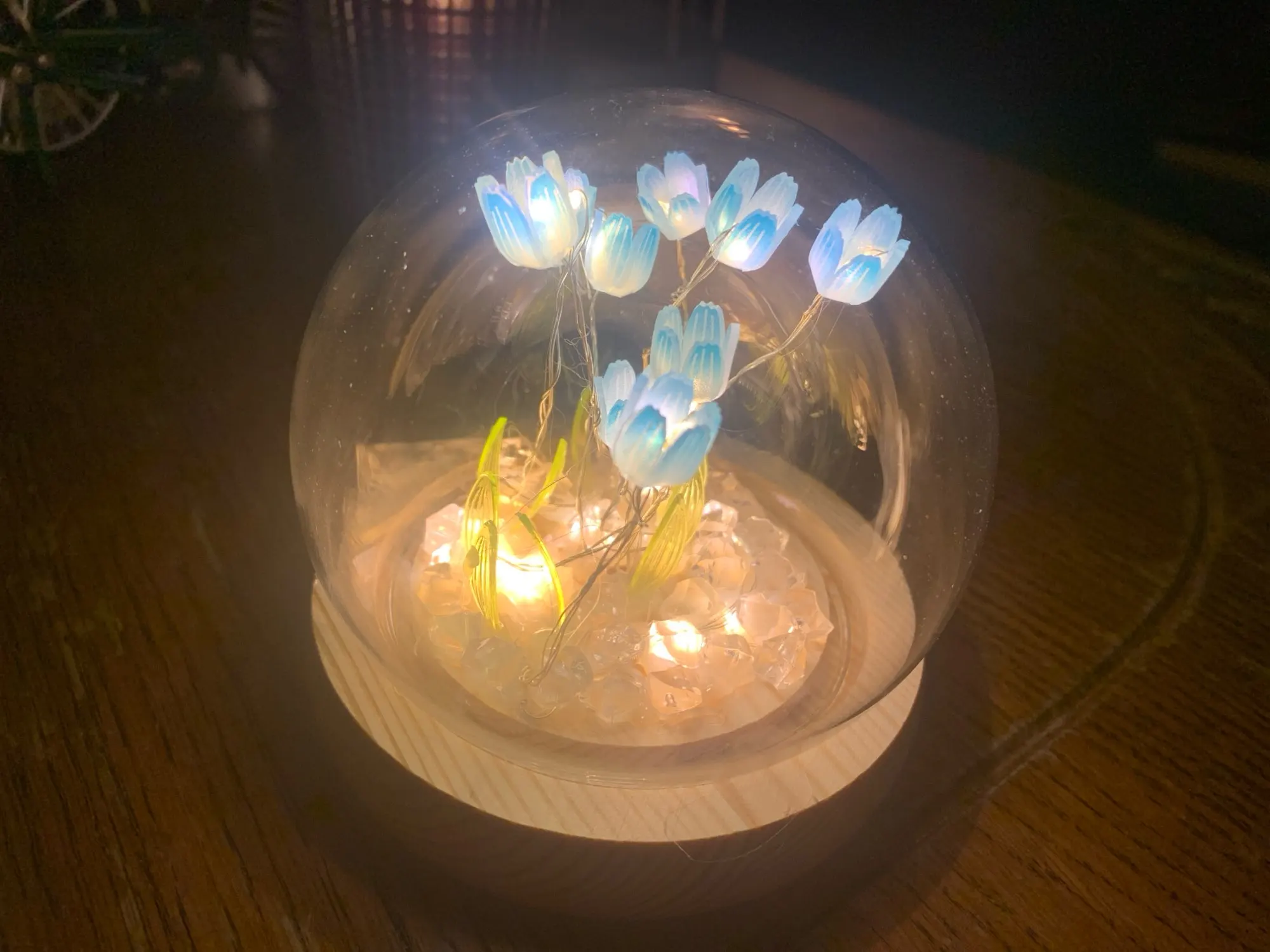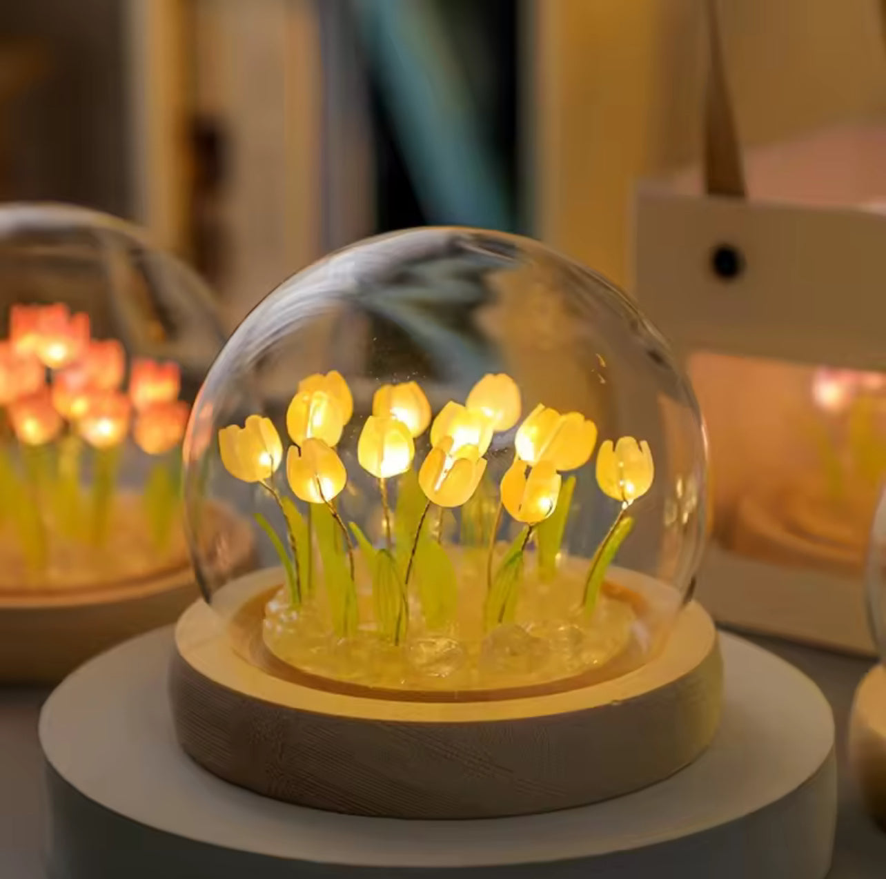 - 🌷 Beautiful tulip design encased in a clear globe