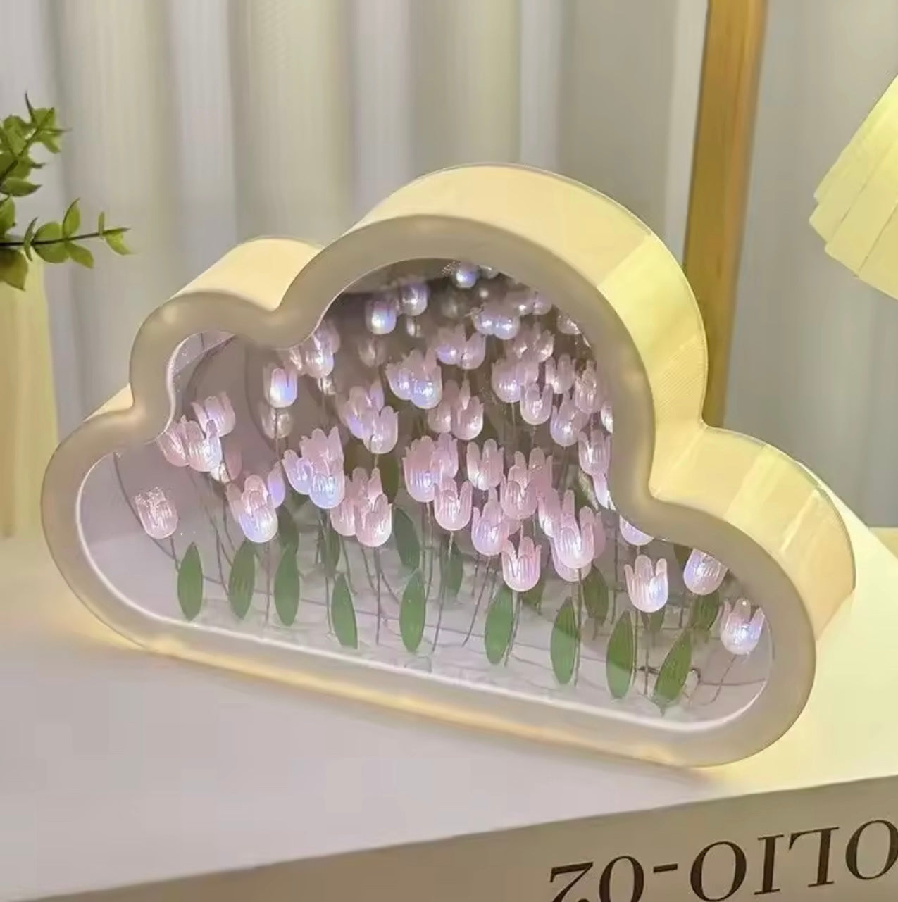 - 🌸 Floral lamp with glowing tulips in crystal-clear acrylic